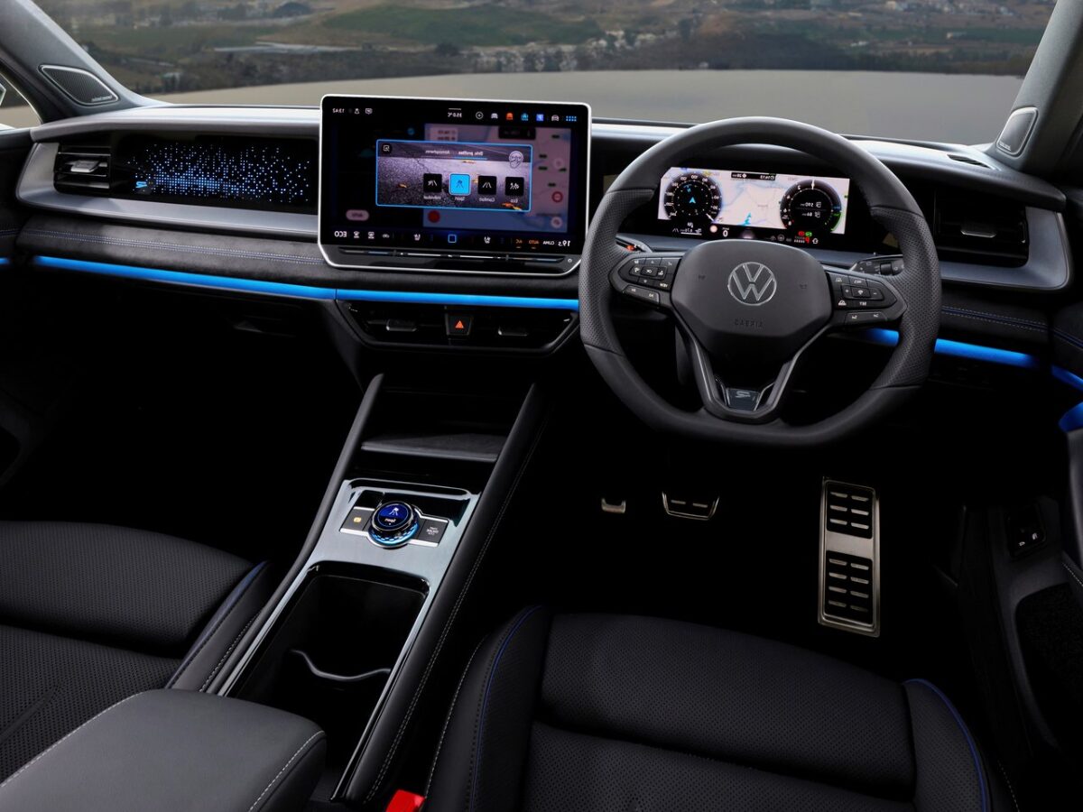 The Tayron R-Line is packed with features like a 15-inch floating touchscreen, a 10.25-inch digital instrument cluster, a panoramic sunroof, Level 2 ADAS, ventilated and powered front seats, a head-up display, 9 airbags, and a 360-degree camera.